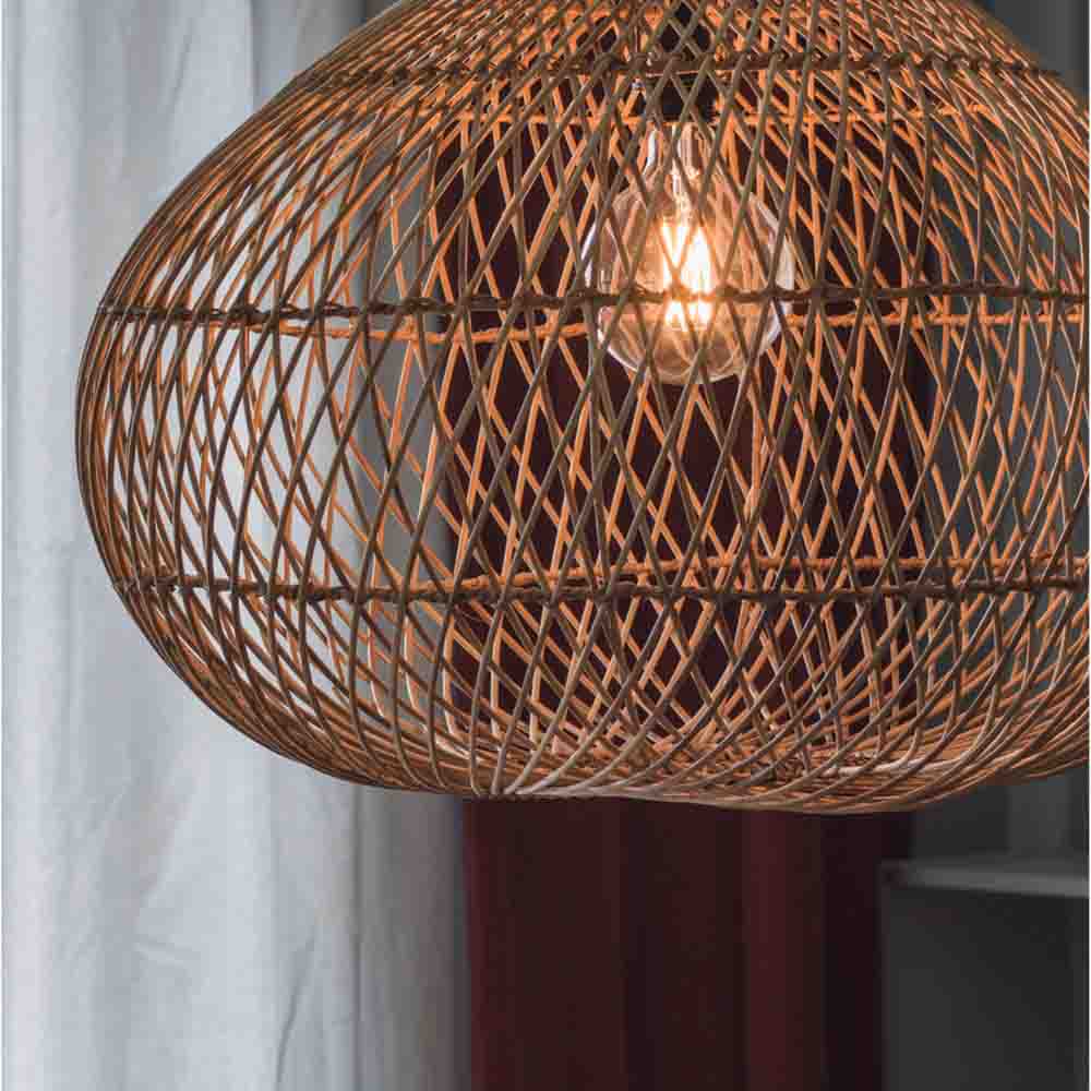 Taklampan Karen är handgjord i flätad naturlig rotting. Eftersom den är tillverkad av naturmaterial kan mindre storleksavvikelser förekomma, och färg samt yta kan förändras över tid.