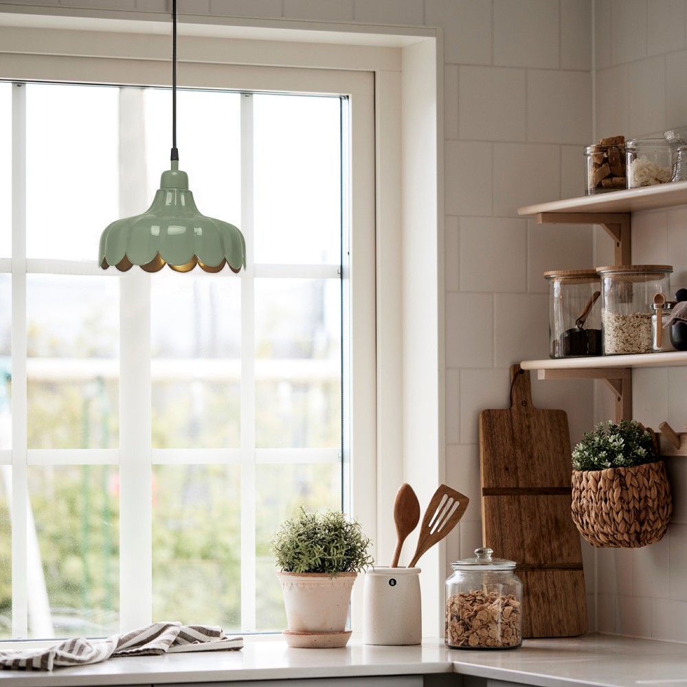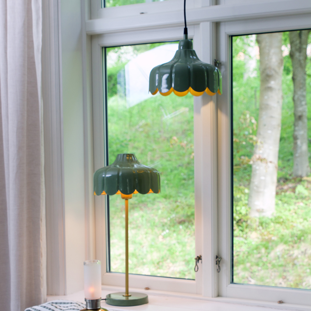 Liten takpendel Wells i metall. Vår serie Wells är designad med inspiration från blomblad och finns i flera färger och modeller. Alla varianter har en guldfärgad insida som sprider ett varmt och behagligt sken. Varje lampskärm är handgjord, och med sin mjuka form och vackra färger ger Wells en fräsch känsla till alla typer av rum.