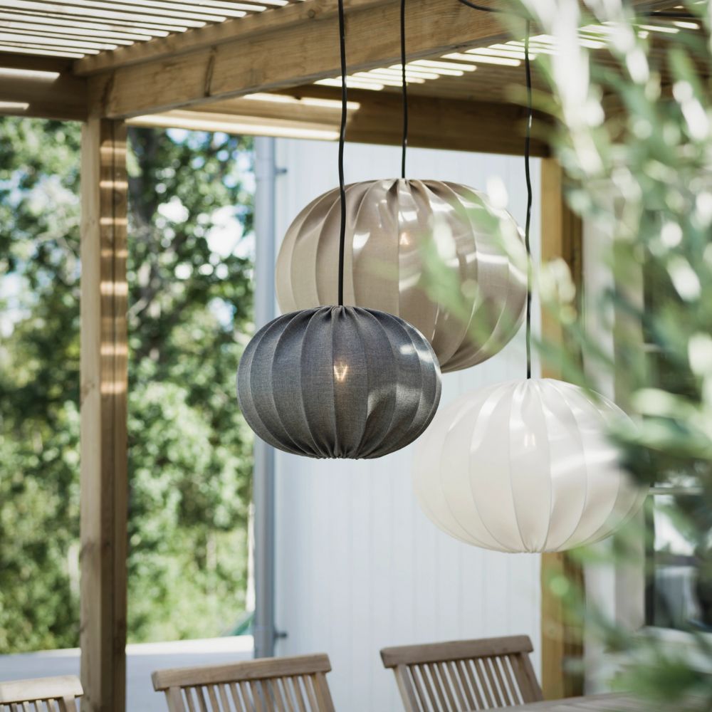 Hilma takskärm för utomhusbruk. Skapa en vacker och mysig utomhusmiljö med våra takskärmar för utomhusbruk. Perfekt att hänga i inglasade uterum eller på en taktäckt terrass.