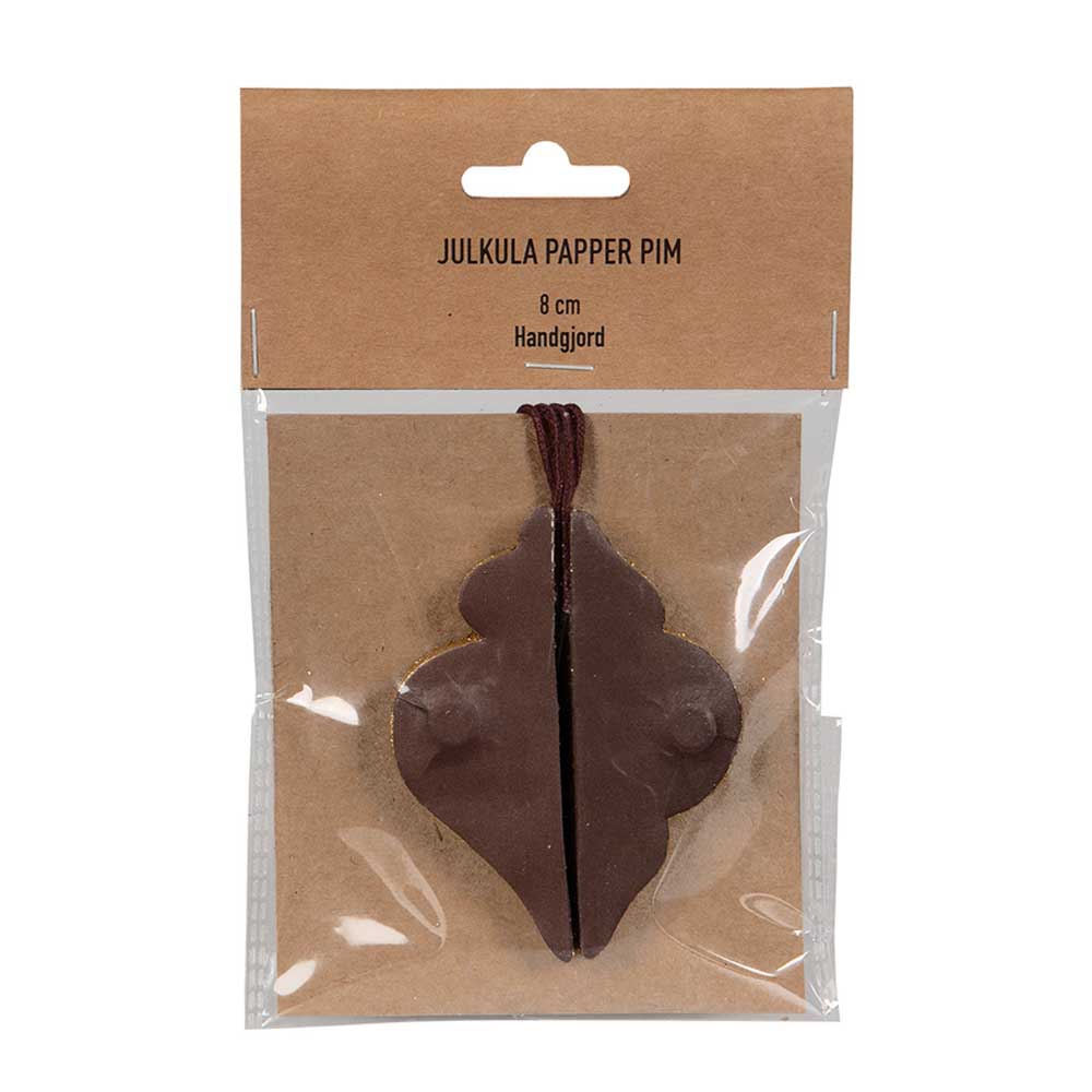 Julkula snöboll i papper med magnet Brun