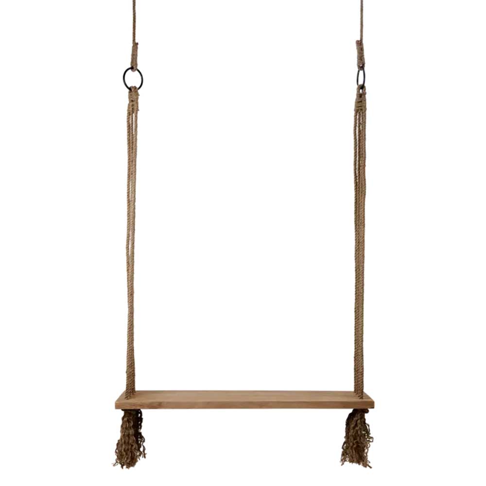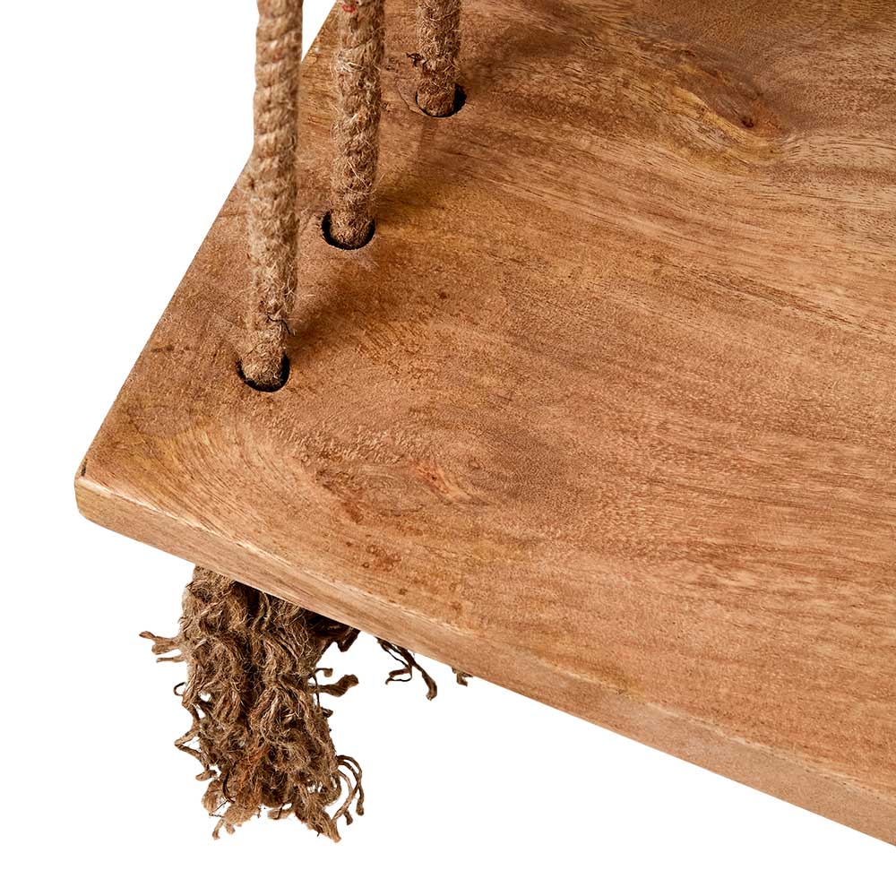 Vacker & praktiskt gunga i mangoträ med förstärkning under som är mysig att hänga i såväl som en vacker inredningsdetalj. Man får sommarfeelings av den & får lekfull atmosfär runt sig.