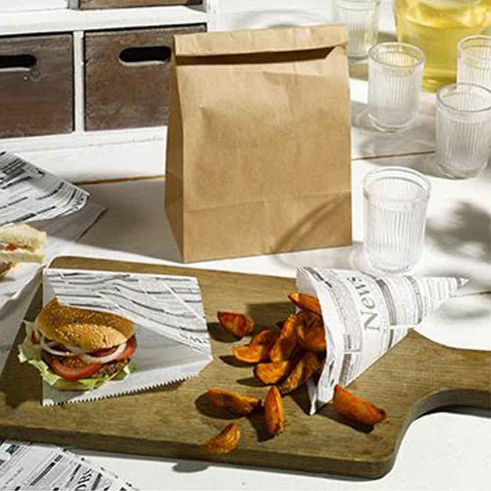 OBS våra papper är inte plastbelagda därav att de inte håller för mycket blöt väta. De ingår i vår miljöserie där allt är biologiskt nedbrytbart och plastfritt. De är fettbeständiga men blir det för mycket dropp från t.ex inlagd gurka och massa dressing så kan de läcka igenom.