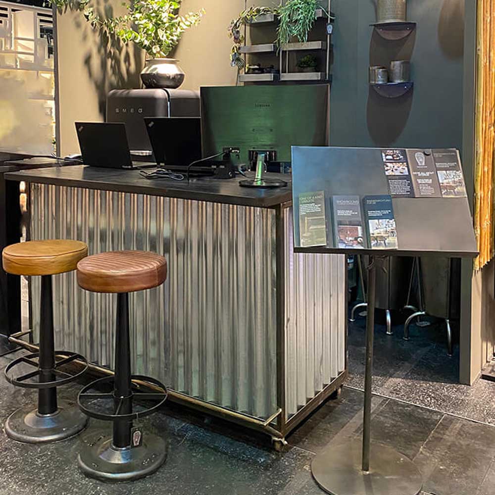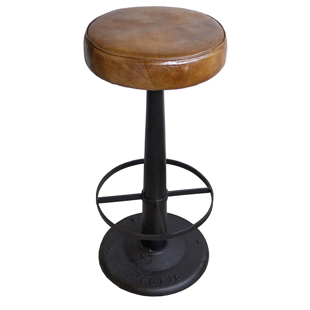 Snygg rustik barpall med rund lädersits och svart järnram. Den har en cool look och lädret har en neutral brun färg. Barstolen passar perfekt in i köket eller kontoret, eller helt enkelt som en extra sittplats vid behov. Barstolen finns även med quiltad läder. Läder är en naturlig produkt vilket gör att variation i färg, utseende och yta kan komma att förekomma. Små repor och ärr är naturliga och inga tillverkningsfel- det är det som gör varje artikel unik.