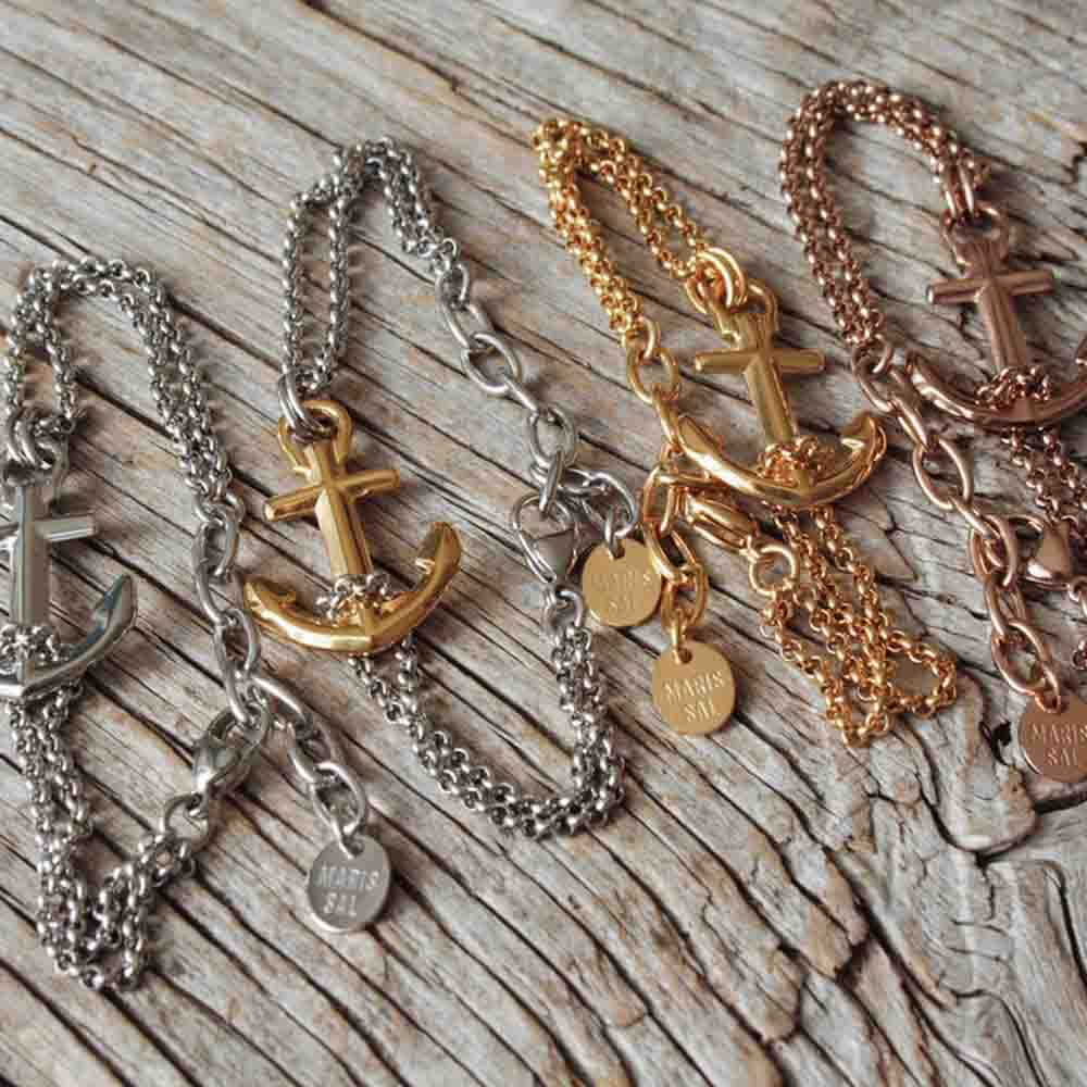 Stilrent armband som vilar vackert på din handled. Fästes enkelt och smart med ankaret runt kedjan. Skapad för den kräsne individen låter vår kollektion dig uttrycka din passion för livets goda viss om att din Maris Sal-accessoar alltid kommer att leva upp till dina förväntningar. Helt vattentålig, högsta kvalitet rostfritt stål med ett guldplätterat ankare i svensk marin design. Vid ej i lager tillverkas det till dig efter beställning på ca 1-2 veckor.