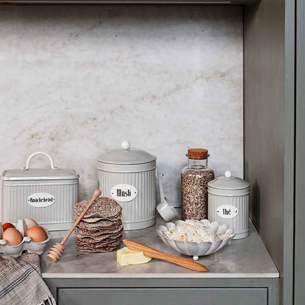 Retro plåtburk med lock för knäckebröd i en snygg beige med texten "knäckebröd". Knäckebrödsburken kommer även som kaffeburk, teburk, kakburk & plåtburk i retrostil för tvättmedel i matchande retrostil. Knäckebrödsburken i retrostil är handgjord och handmålad vilket innebär att vissa olikheter och ojämnheter kan förekomma. Plåtburken tål ej maskindisk.