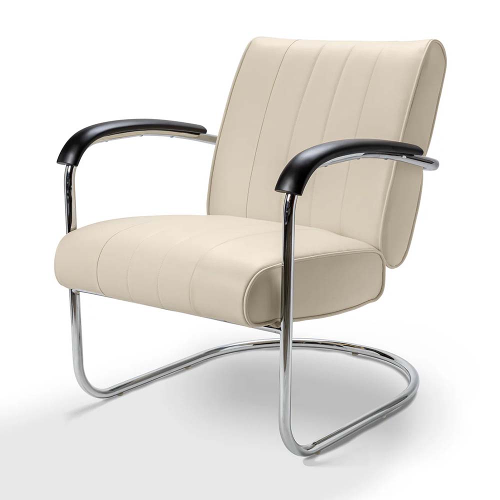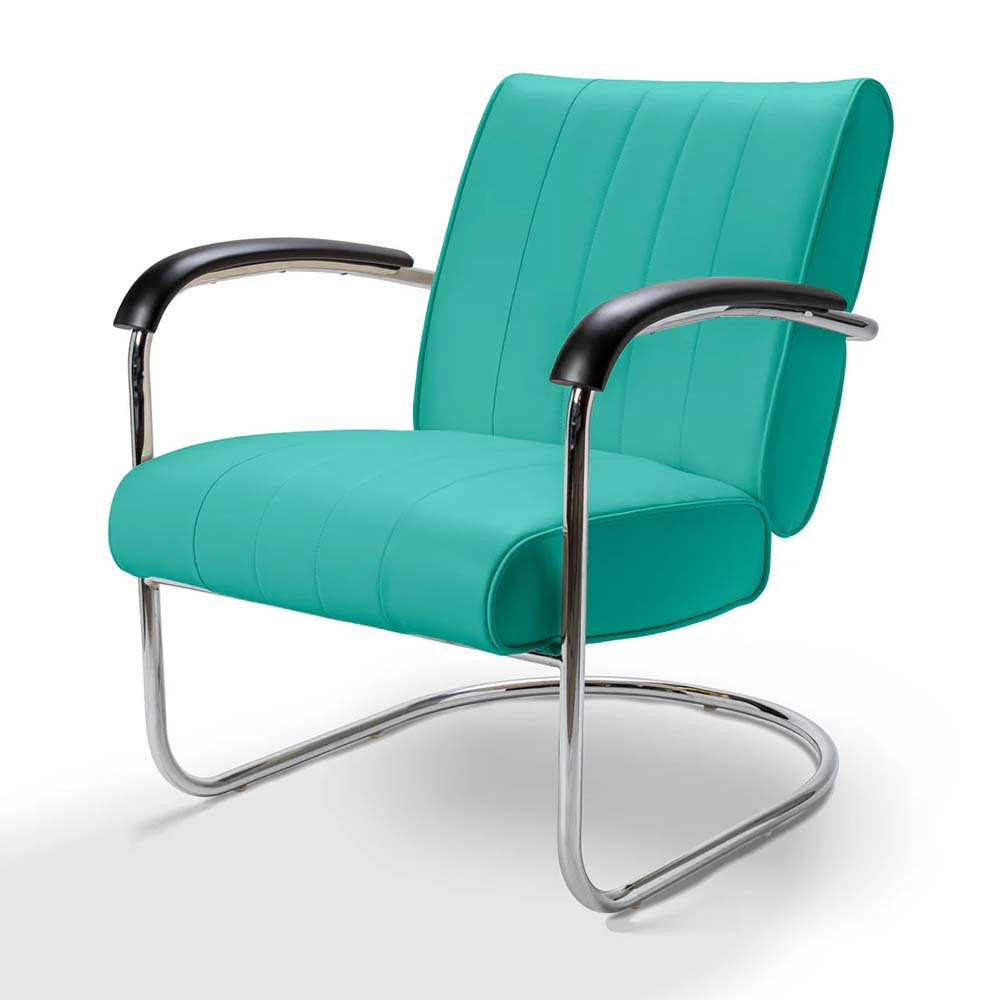 Snygg retro fåtölj inspirerad av inredningen av amerikanska diners på femtiotalet. Denna Bel Air Pullman Chair Chrome designades av Thijs Smeets och vann 2003 Eye Wish Design Award. Med sin vintage kromram, extremt bekväma sittupplevelser . En skön loungefåtölj som passar lika bra i hemmet som på en restaurang. Matcha fåtöljerna med våra loungebord för att skapa din egna diner hemma!