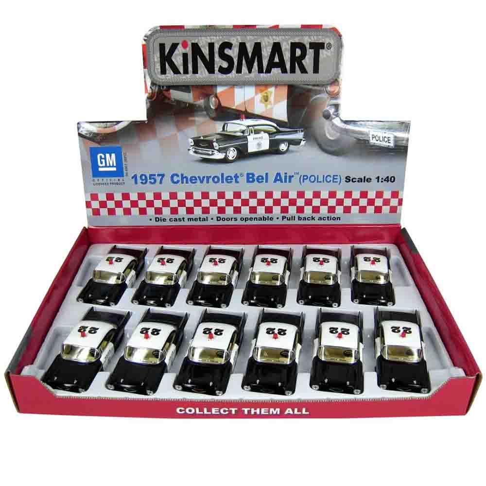 Leksaker är ju inte bara för barn utan även vuxna kan sälka dessa miniatyrbilar för dekoration. Denna Chevrolet Bel air police 1957 är en Polisbil i miniatyr med dörrar som går att öppna och stänga och "pull back" -funktion, vilket betyder att drar du den bakåt sticker den iväg! Fin inredningsdetalj i ditt retrohem. Skala 1:40Mått: Längd 12 cm x bredd 5 cm