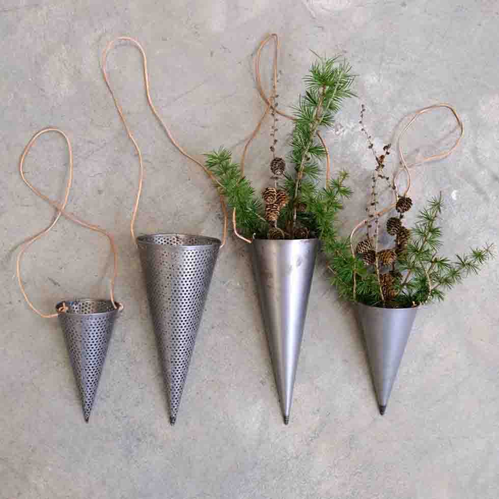 Rå och rustik strut i järn med 40 cm läderupphängning. Häng den som juldekoration på en krok eller i ditt fönster och blanda det gärna med andra metalldekorationer för en cool och industriell look. Lägg till en gren med lite läckert julpynt eller använd järnstruten som en fin detalj i din bordsdekoration eller dukning till jul. Kan även dekoreras med en fin ljusslinga. Juldekorationen har ett brunt lädersnöre för snygg upphängning.