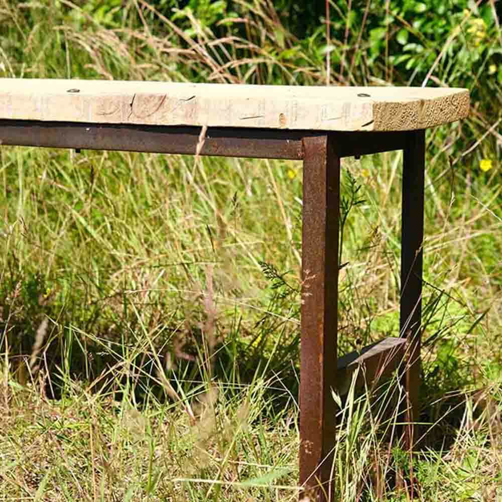 Old school bänk i patinerat trä med järnstomme och järnben. Använd bänken som en låg möbel eller ett lågt konsolbord för att sätta några av dina vackra saker på. Perfekt bänk för dig som tänker hållbart när du köper nytt, då dessa bänkar är original gamla skolbänkar. OBS, det kommer det att finnas avvikelser från bänken på bilden - Det finns en stor variation i storlek på denna artikel.