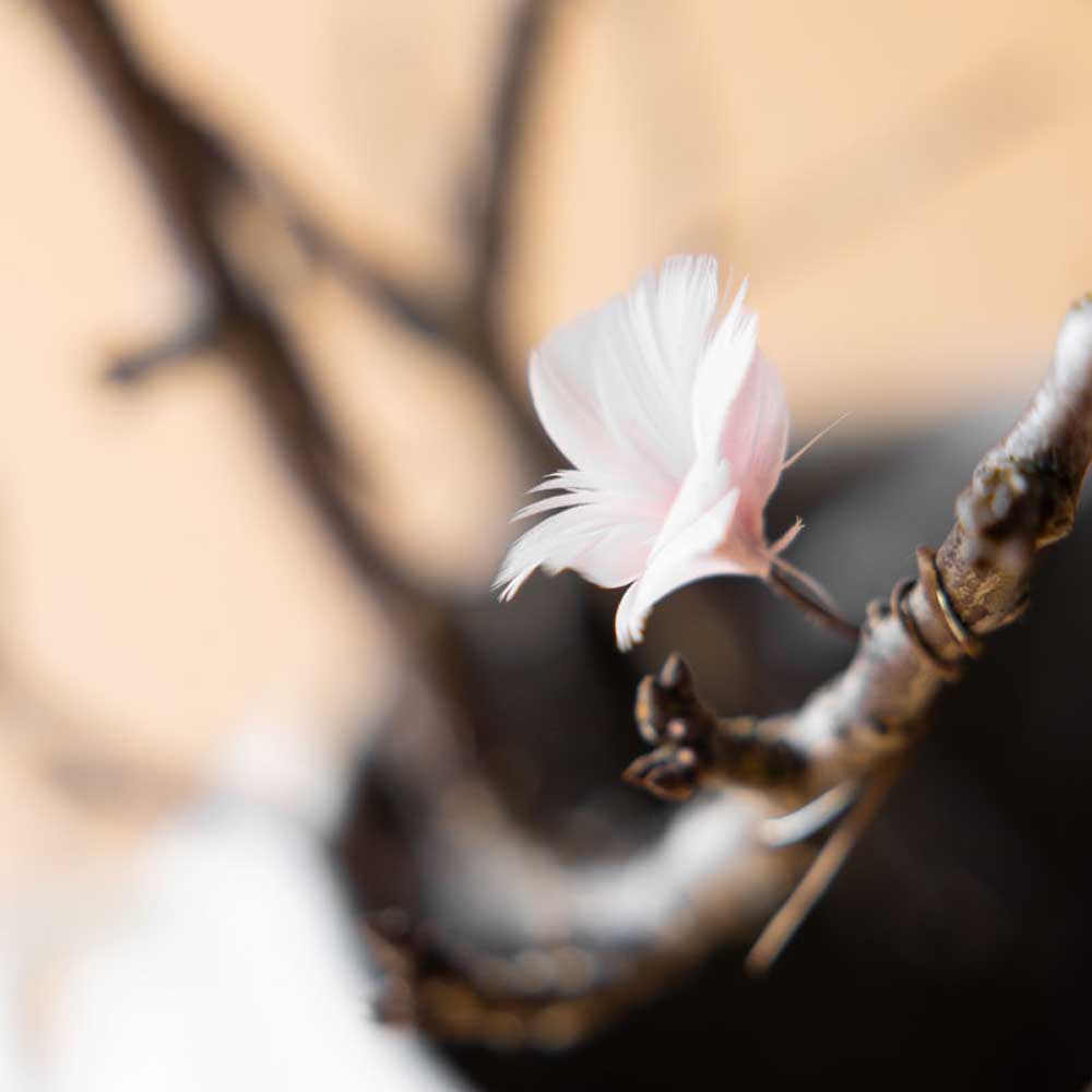 Fjädrar med ståltråd, formade som blommor. Perfekta för att dekorera grenar eller blomsterarrangemang. Finns i flera färger och varianter som är fina att mixa med. Dessa kommer i en läcker ljusrosa färg.