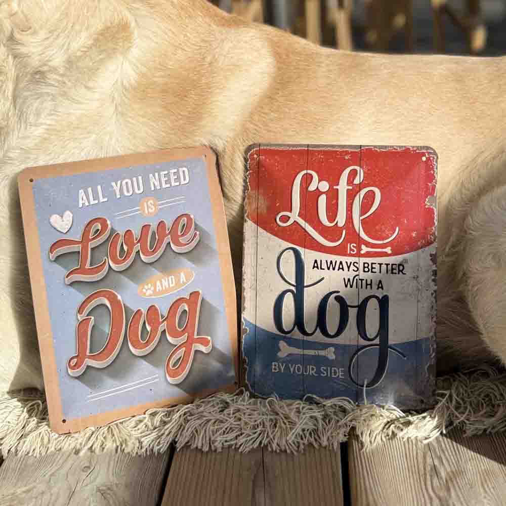 Plåtskylt 15 x 20 cm - Life is always better with a dog by your side