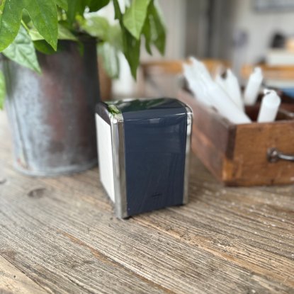 På Magasin 11 hittar du även populära retro servettställ som vi säljer både till privatpersoner och till diners & kaféer. Servettställen finns i många varianter och färger från till exempel Hollänska Cabanaz. Till servettställen säljer vi även refillservetter (påfyllnadsservetter)som du enkelt pluttar in i servettstället på sidan. Servetthållarna är också en superbra gå bort present då den är perfekt och snygg att ha framme. Lite retro & restaurang-inspirerat & industriellt som vi gillar!