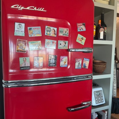 Är du ute efter ett nytt kylskåp i retrostil har vi retro kylskåp i olika modeller från Severin. Dessa finns som mindre kylskåp, vinkylar och retro kylskåp med frys ovanför. Vill du ha ett stort kylskåp i retrostil är Amerikanska Big Chill kylskåpet för dig. Big Chill är ett amerikanskt märke som säljer snygga och rejäla retro plåtkylskåp med "klickhandtag" i modell STORT. Dessa amerikanska kylskåp är otroligt snygga och större än en standard kyl vilket ju ger en del av den amerikanska retrokänslan. De blir verkligen en kyl som utmärker sig i ditt kök (jag vet, jag har ett själv som jag bara älskar!). Vill du få bilder eller video är det bara att kontakta mig!
