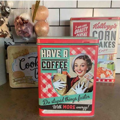 En annan köksinredning vi har ett brett sortiment av är våra läckra plåtburkar i retrostil. Dessa kan du ha tätslutande för kaffe, för frukostflingor eller teburkar. Snygga att blanda med lite gamla & nya plåtburkar för snygg och praktiskt förvaring. Vi har ett brett utbud retroburkar för dina köksbestyr!