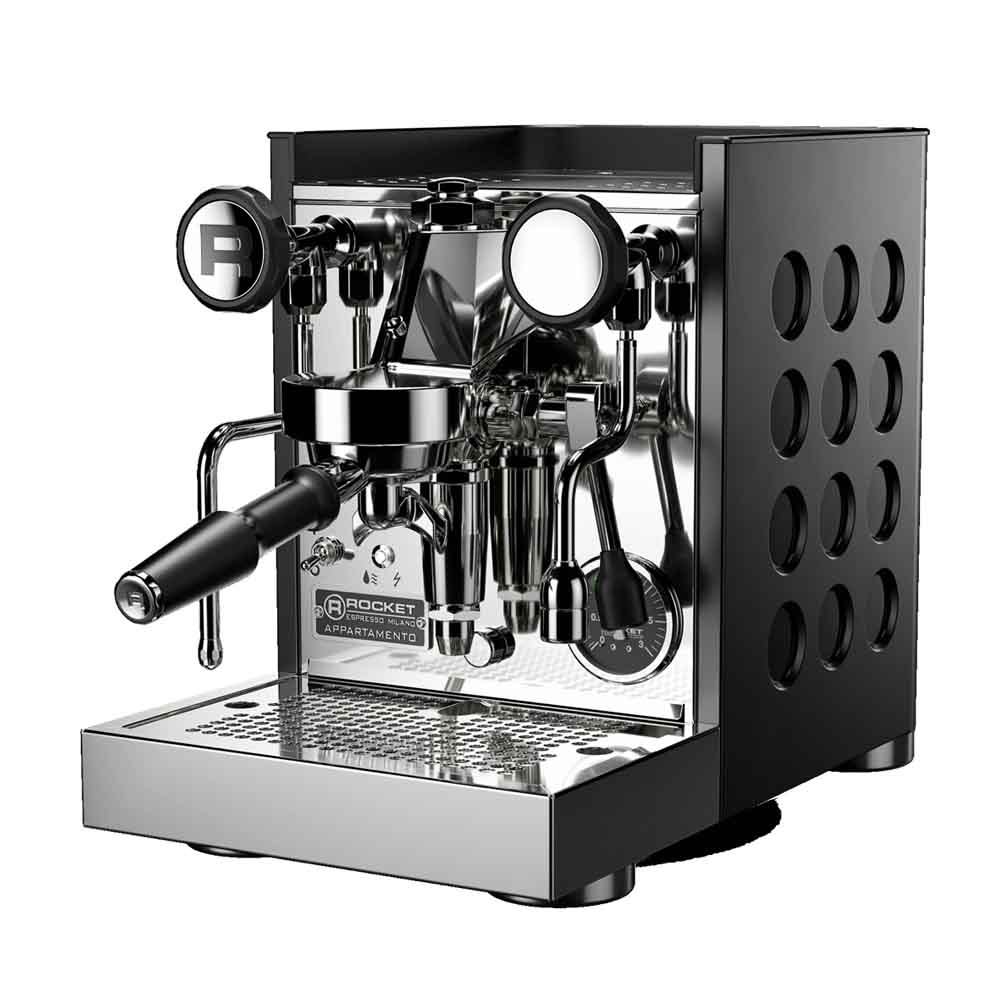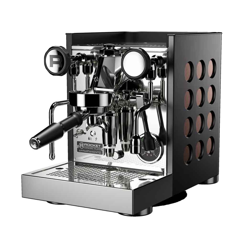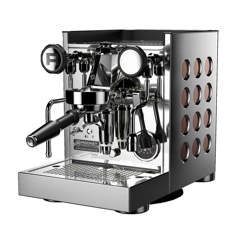 Appartamento TCA från Rocket Espresso är en vidareutveckling av den populära modellen Rocket Appartamento. Med en kokare med 1,8 liter och värmeväxlare har den en konstruktion enligt samma principer som professionella espressomaskiner.Appartamento TCA har mjukare former med vetikal Rocket logga på baksidan gör sig maskinen fantastiskt i en öppen köksmiljö. De försänkta sidoringarna som symboliserar Appartamento har försänkts så att det ger en härlig tredimensionell effekt.