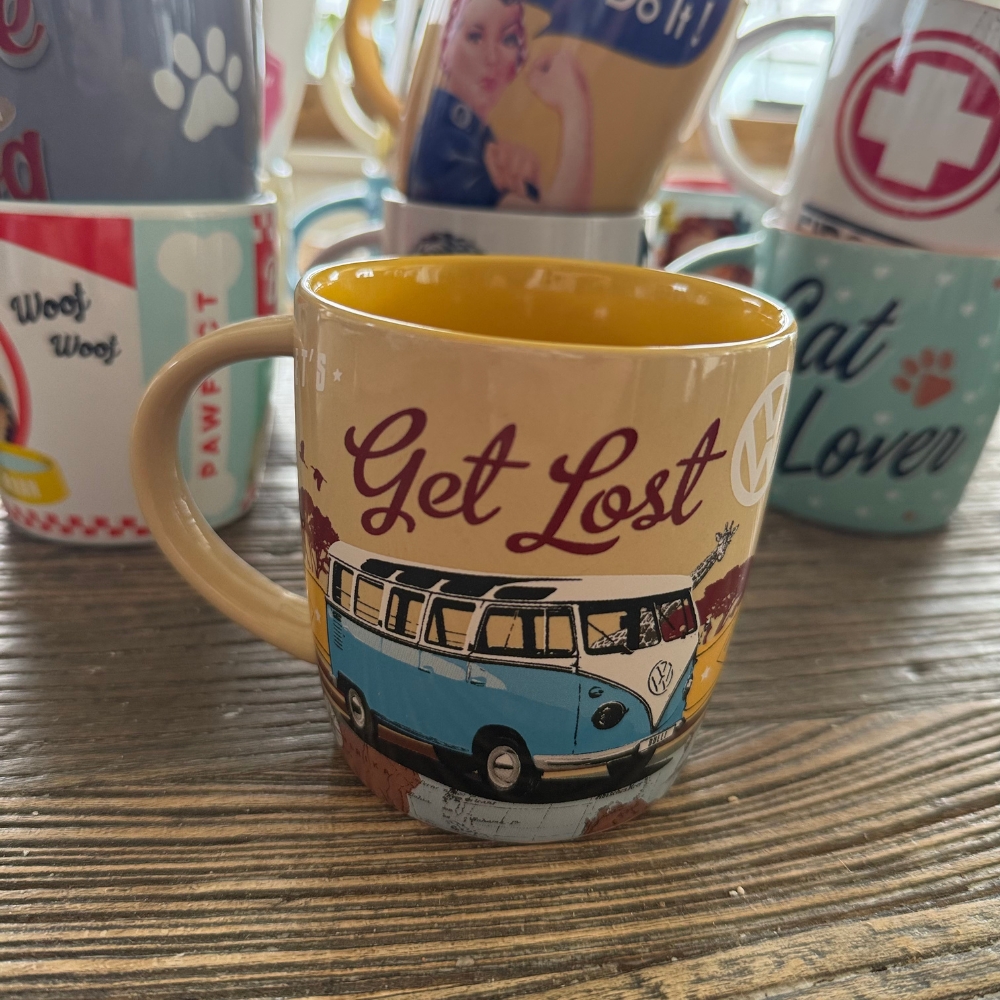 Den här snygga muggen med härlig känsla av retro är gjord av porslin och rymmer 0,33 liter. Passar bra att pigga upp dit kök och frukost med eller varför inte på jobbet. Finns en sort för alla. Obs skillnader i handtaget kan förekomma, varje mugg är unik.