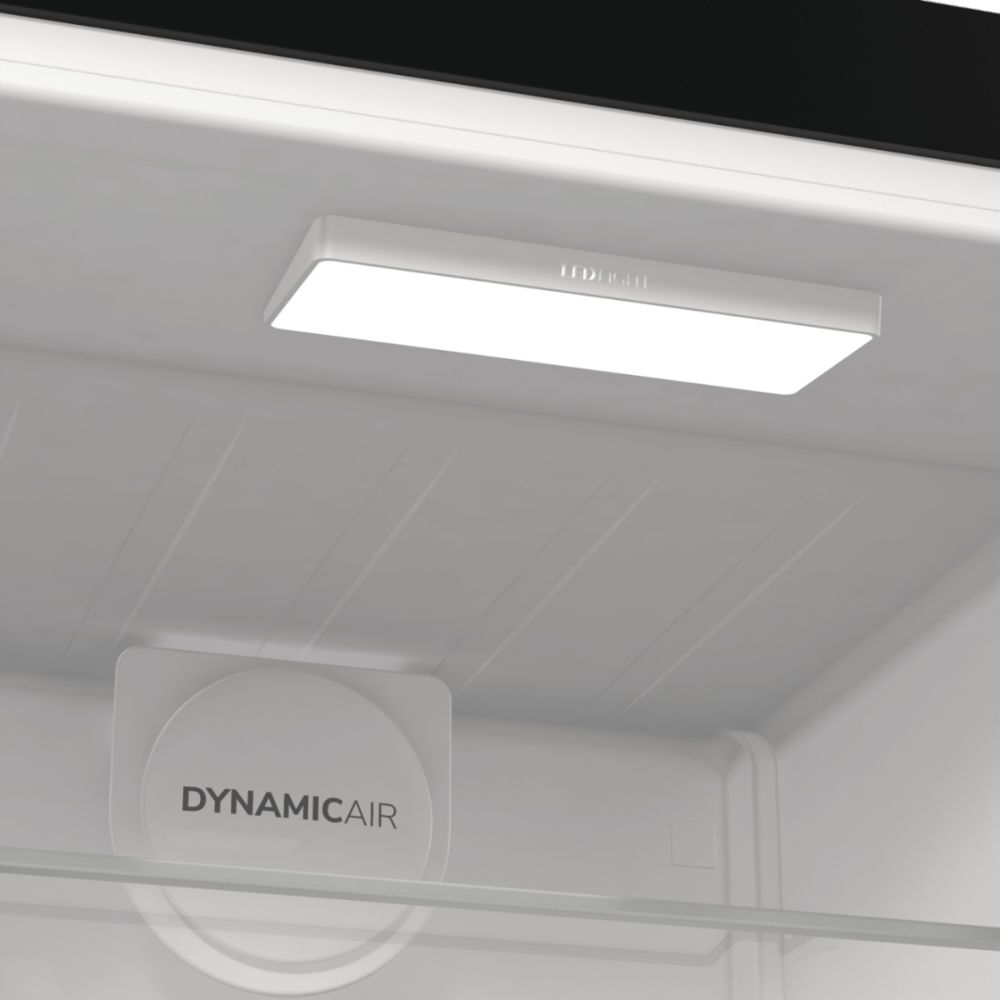 Tack vare smarta funktioner som AdaptTech, som lär sig dina vanor och anpassar temperaturen därefter, och DynamicCooling som ser till att kylan sprids jämnt, håller dina varor sig fräscha längre. De två CrispZone-lådorna – varav en med fuktkontroll – är perfekta för frukt och grönt, medan FreshZone-lådan ger kött och fisk en sval plats.