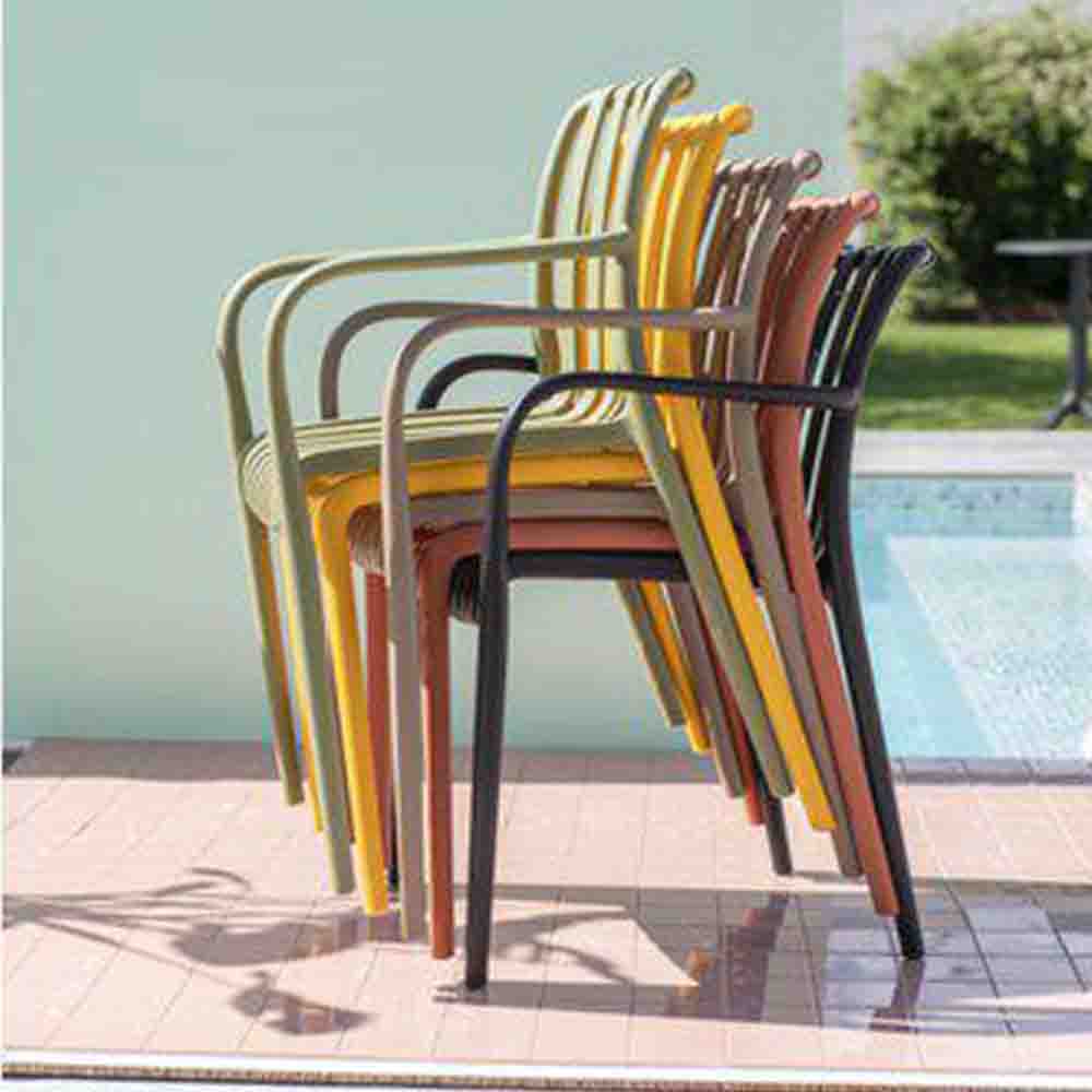 Snygg karmstol för utomhusbruk som är tillverkad i 50% återvunnen plast från Wikholm Form. Stolen är stapelbar och denna varianten kommer med snygga och praktiska armstöd. Ravello finns även i en variant utan armstöden samt i flera färger som denna roströda, men även i grön, gul, svart och beige. Fina att mixa & matcha! Du hittar även ett matchande bord till i serien Ravello.
