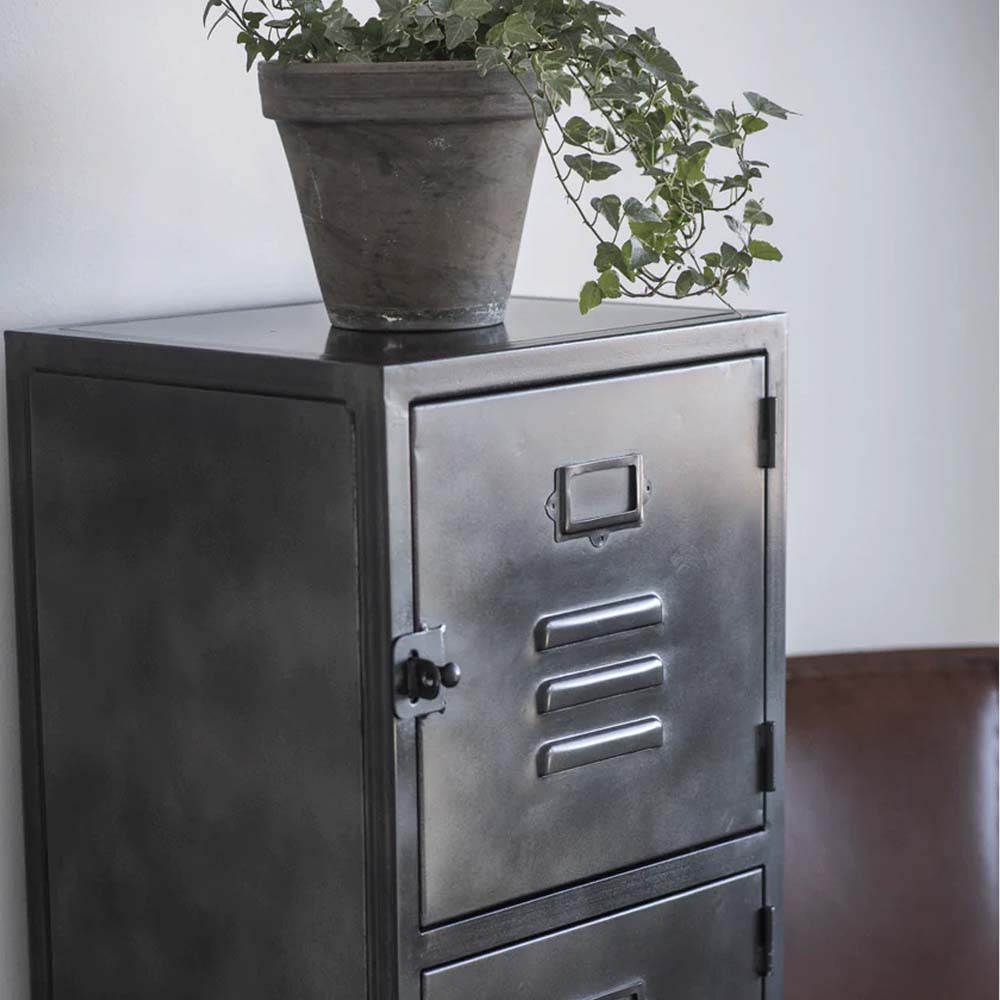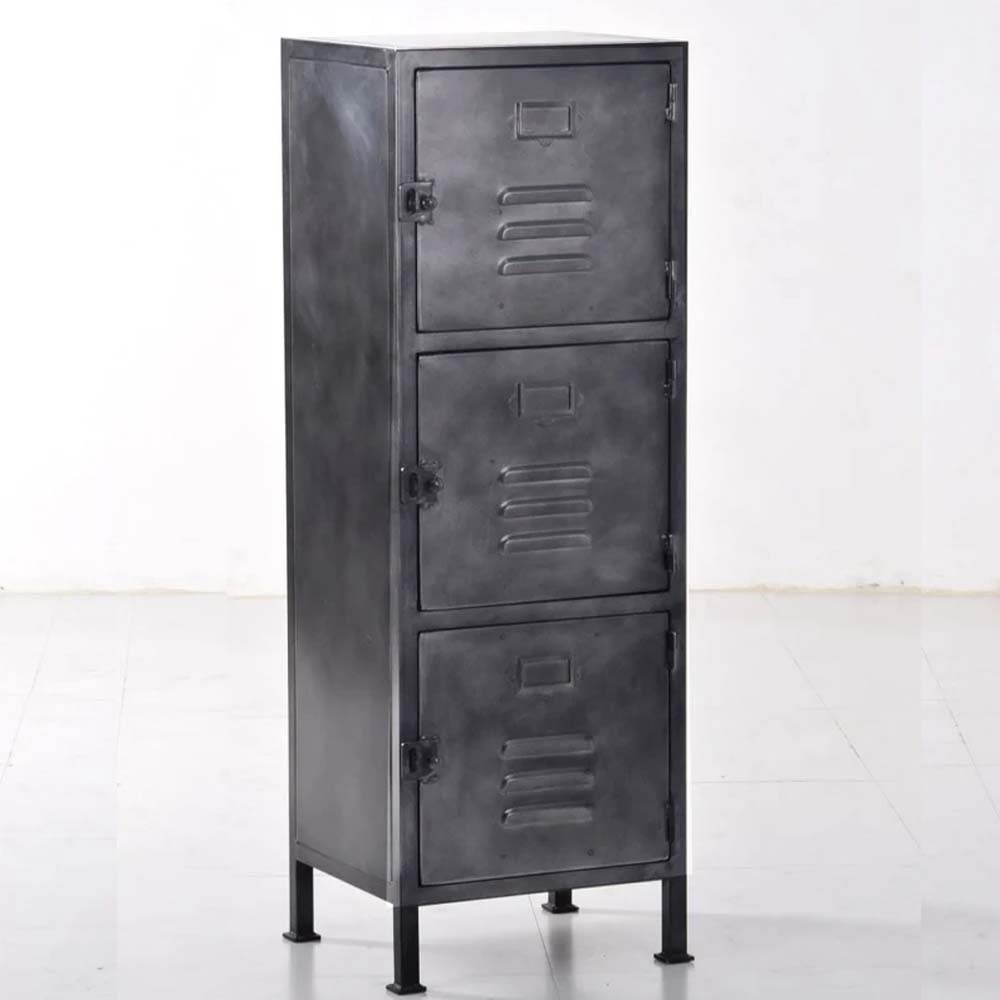 Gediget plåtskåp med tre skåpsluckor. Metallskåpet är tillverkat av plåt i en ruffig stil och det har flera praktiska luckor för förvaring. Finns i flera olika varianter med olika mängd luckor och mått.