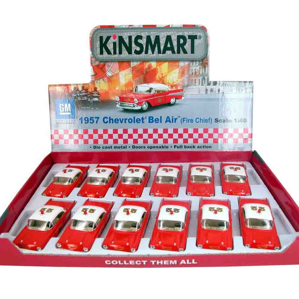 Denna Chevrolet Bel air fire chief 1957 är en minibil i skala 1:40 som har dörrar som går att öpnna och stänga och  en pull back funktion vilket innebär att drar du den bakåt sticker den iväg frammåt när du släpper den. En Klassisk amerikansk branbil är superfin att använda som inredningsdetalj i ditt retrohem.
