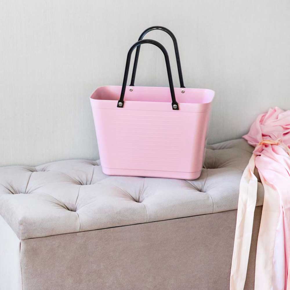 Shoppingväska från Hinza i Svensk design gjord av biobaserad plast. Väskan är suverän som handväska, att packa i för badhuset, utflykt, eller när du ska till jobbet. Den rymmer mycket, står stadigt och är lätt att hålla ren. Hinzaväskan är även utmärkt till snygg och praktisk förvaring i hemmet. Denna är i en härlig läcker gammelrosa, en ny färg för 2024, som kommer i 2 olika storlekar (detta är den mindre modellen). Grön plast kan återvinnas på samma sätt som traditionell plast. Variationer i ytskiktet kan förekomma.