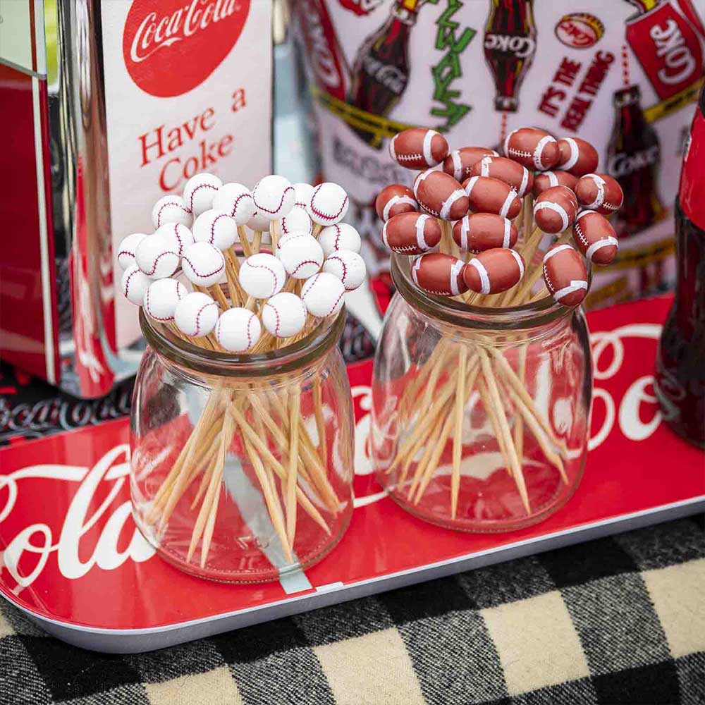 Skapa en äkta amerikansk fest eller barbeque med dessa dekorativa pinnar med amerikanska fotollar gjorda av eko-vänlig bambu. Passar perfekt till mindre tilltugg eller i burgarna! Matpinnarna finns även med baseball som du hittar här.