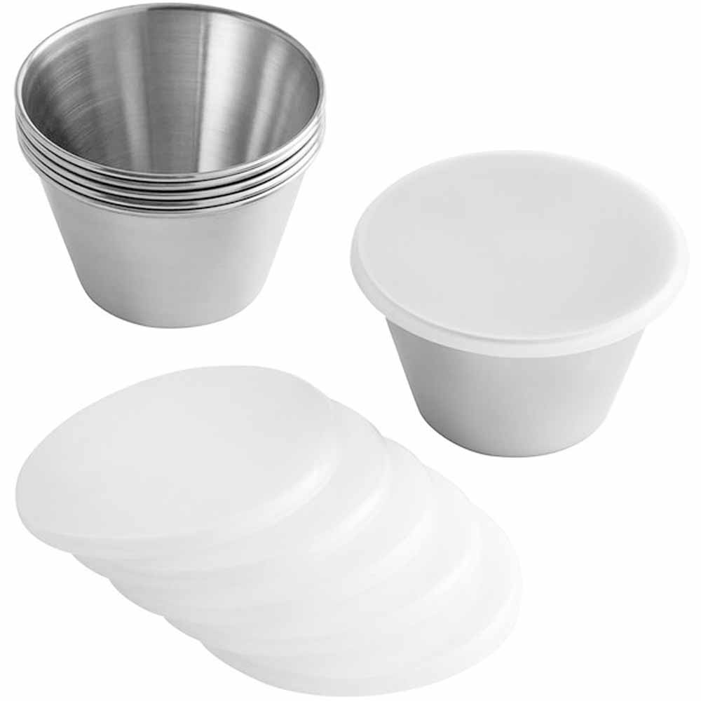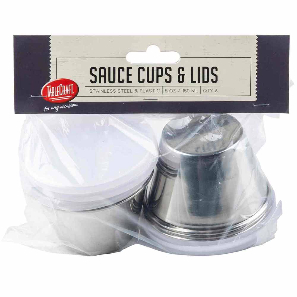 Rostfria skål med lock för såser & tillbehör. Perfekt storlek och trevliga att servera i samt bra att förvara sås rester av dippsåser & mat i kylskåpet med sina medföljande lock. Säljes i 6 pack & lock ingår. Från Amerikanska Tablecraft.