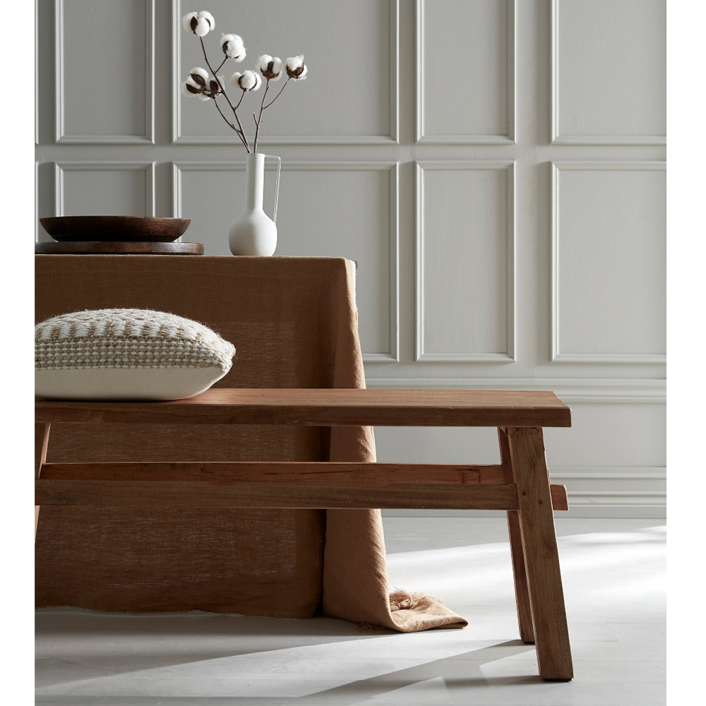 En fin bänk i mahogny från serien Kaida. Serien är skapad för att framkalla en vintagekänsla och är skapad med återvunna och träbaserade produkter. För att uppnå den rätta gamla vintagekänslan är produkterna från Kaida serien inte tillverkade för att vara perfekta i produktionen vilket bidrar till att varje pall är unik i utseendet.Mått & InfoFärg: Natur | MahognyMått: 111 x 34 x 45 cmVarumärke: Wikholm Form